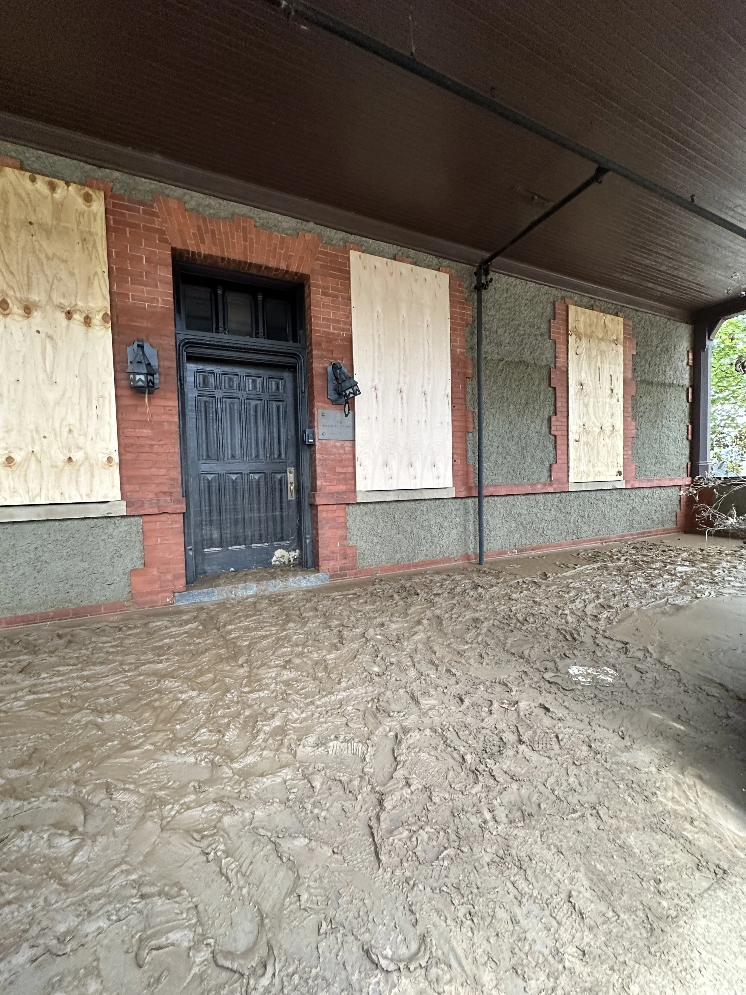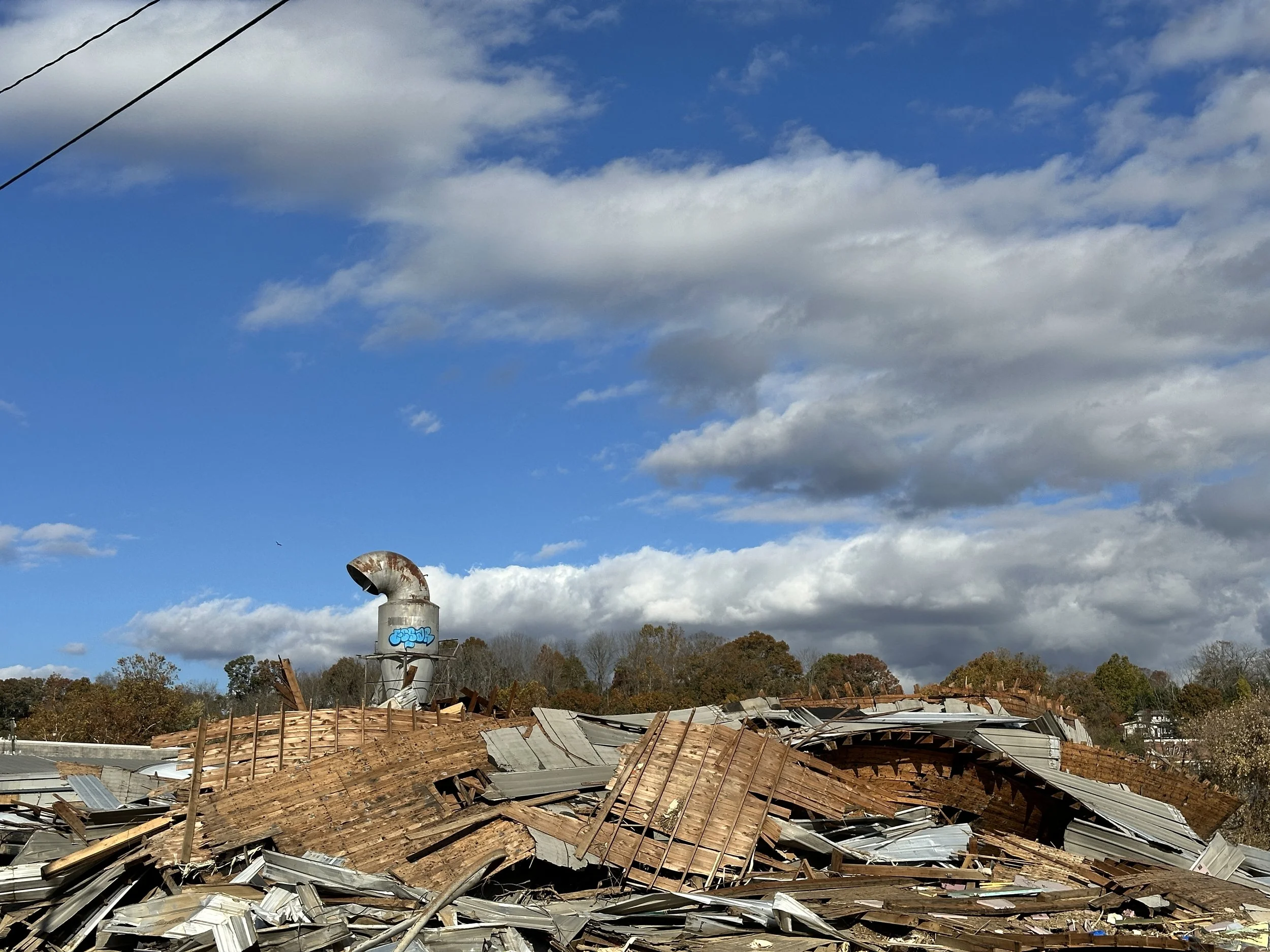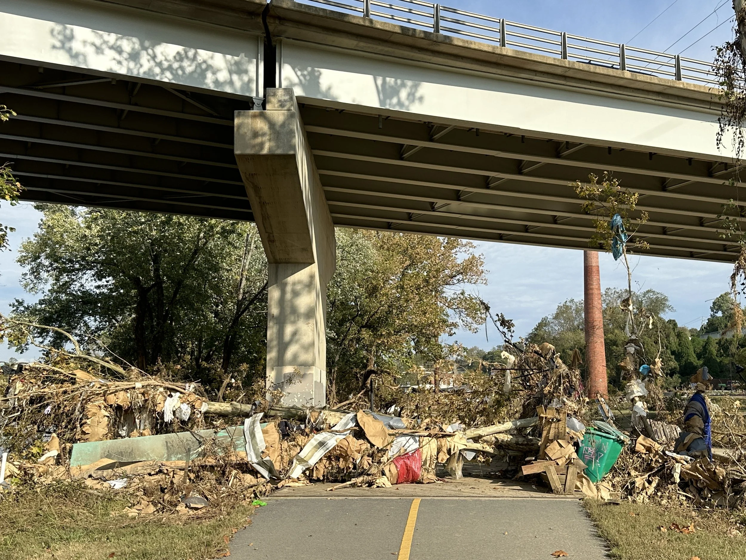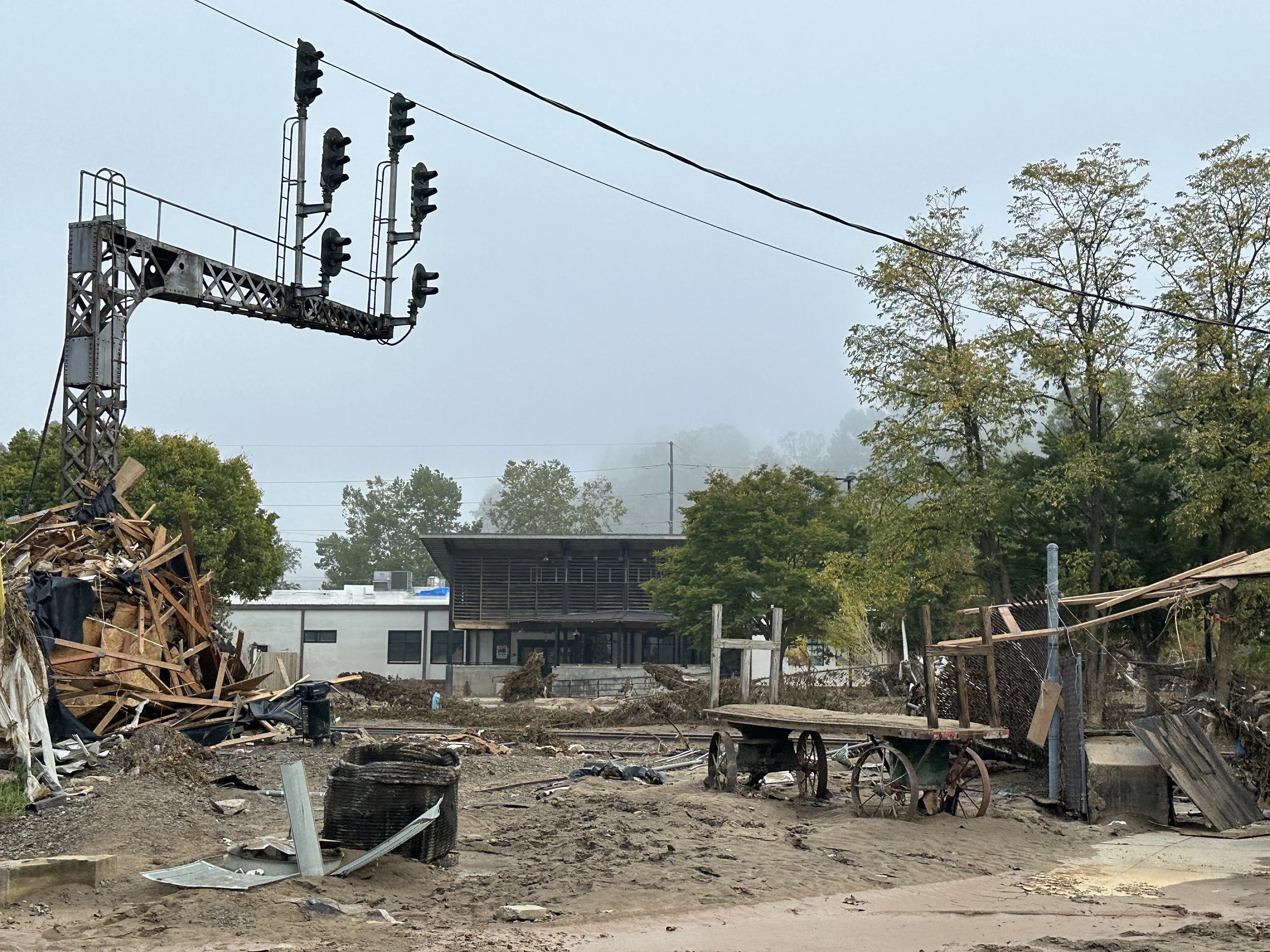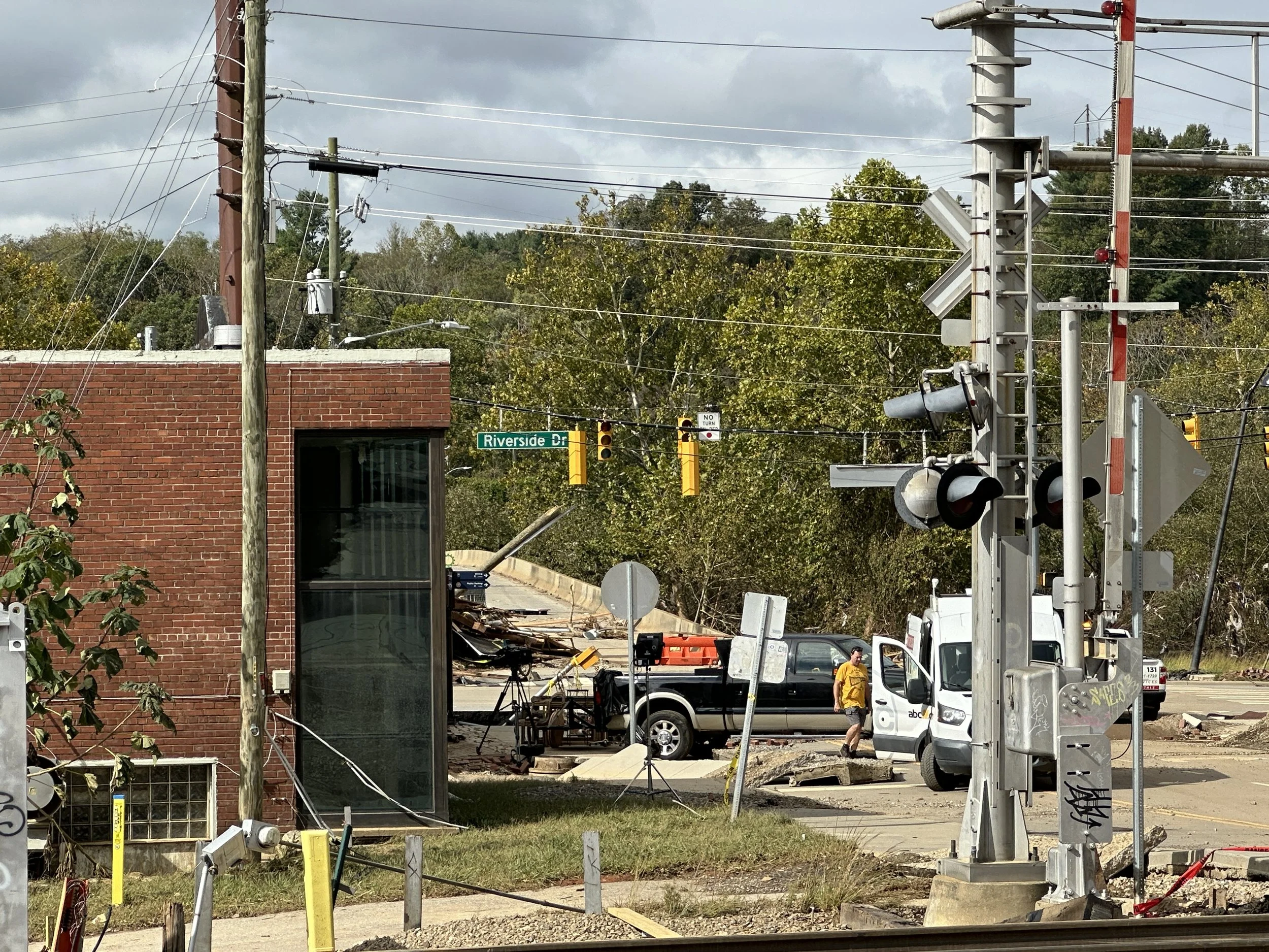 River Arts District after Helene. Second Gear was eventually torn down to foundation a year after the storm and will now be an outdoor skating rink.