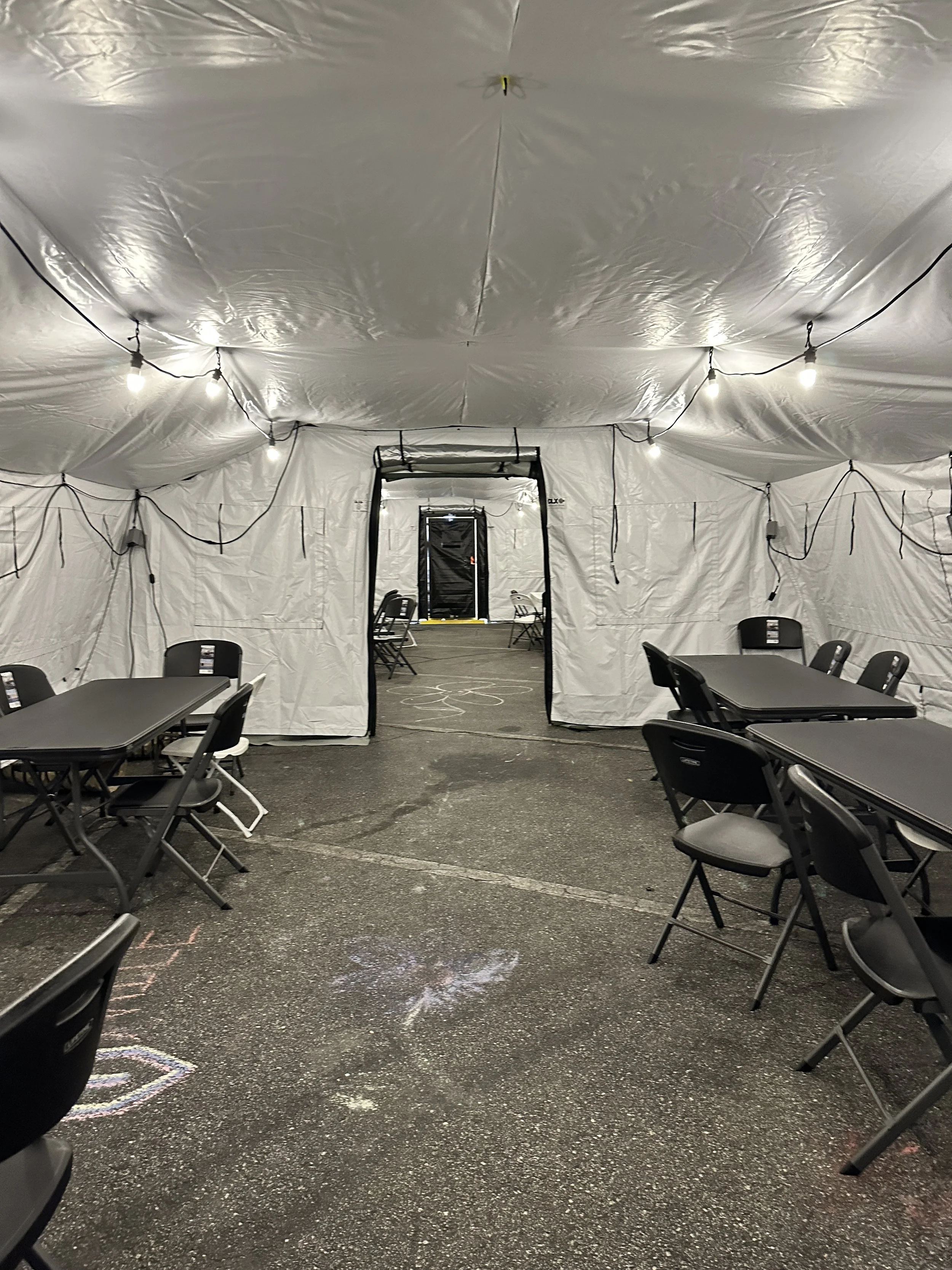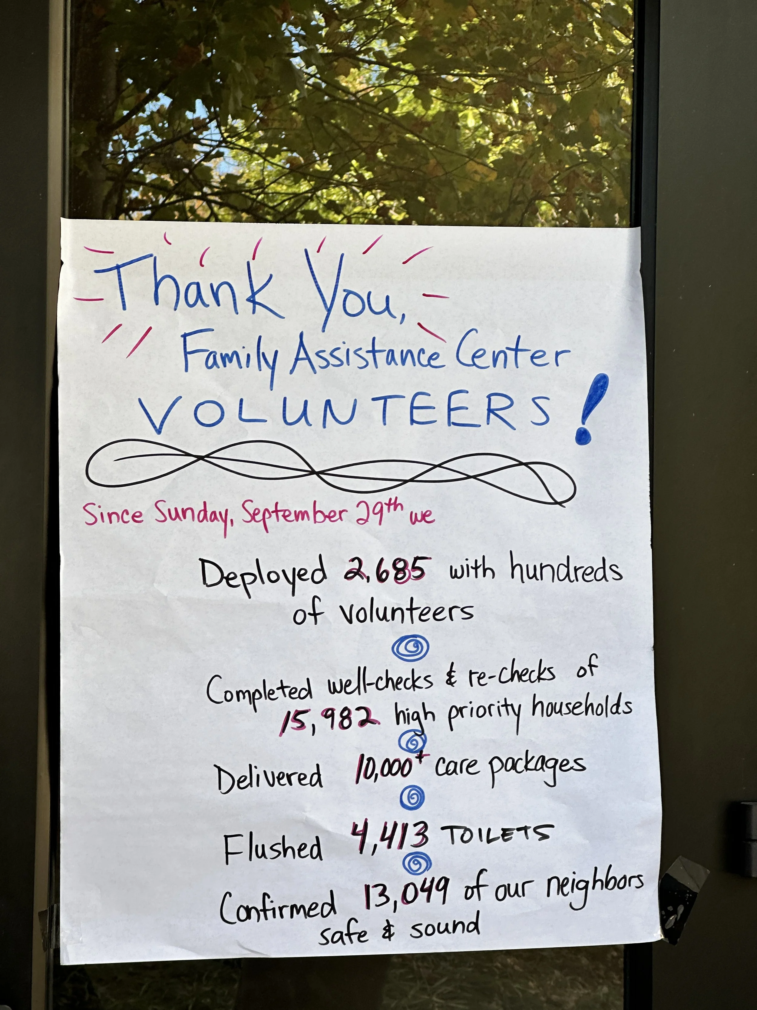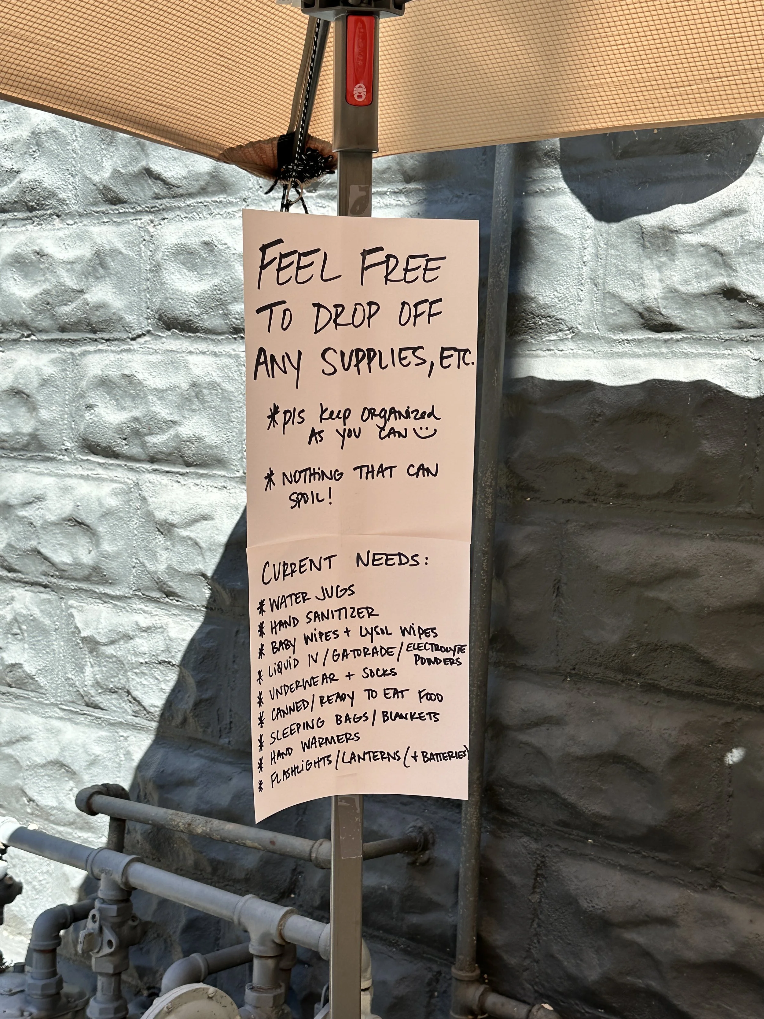 One of the community support systems. Free Wi-Fi and phone charging for the weeks after when home service was still not available.