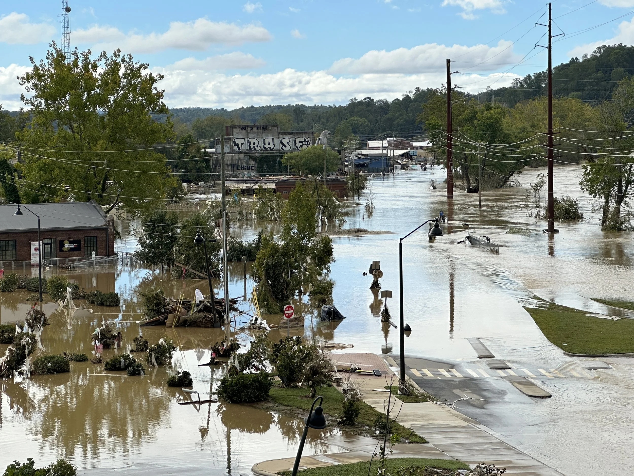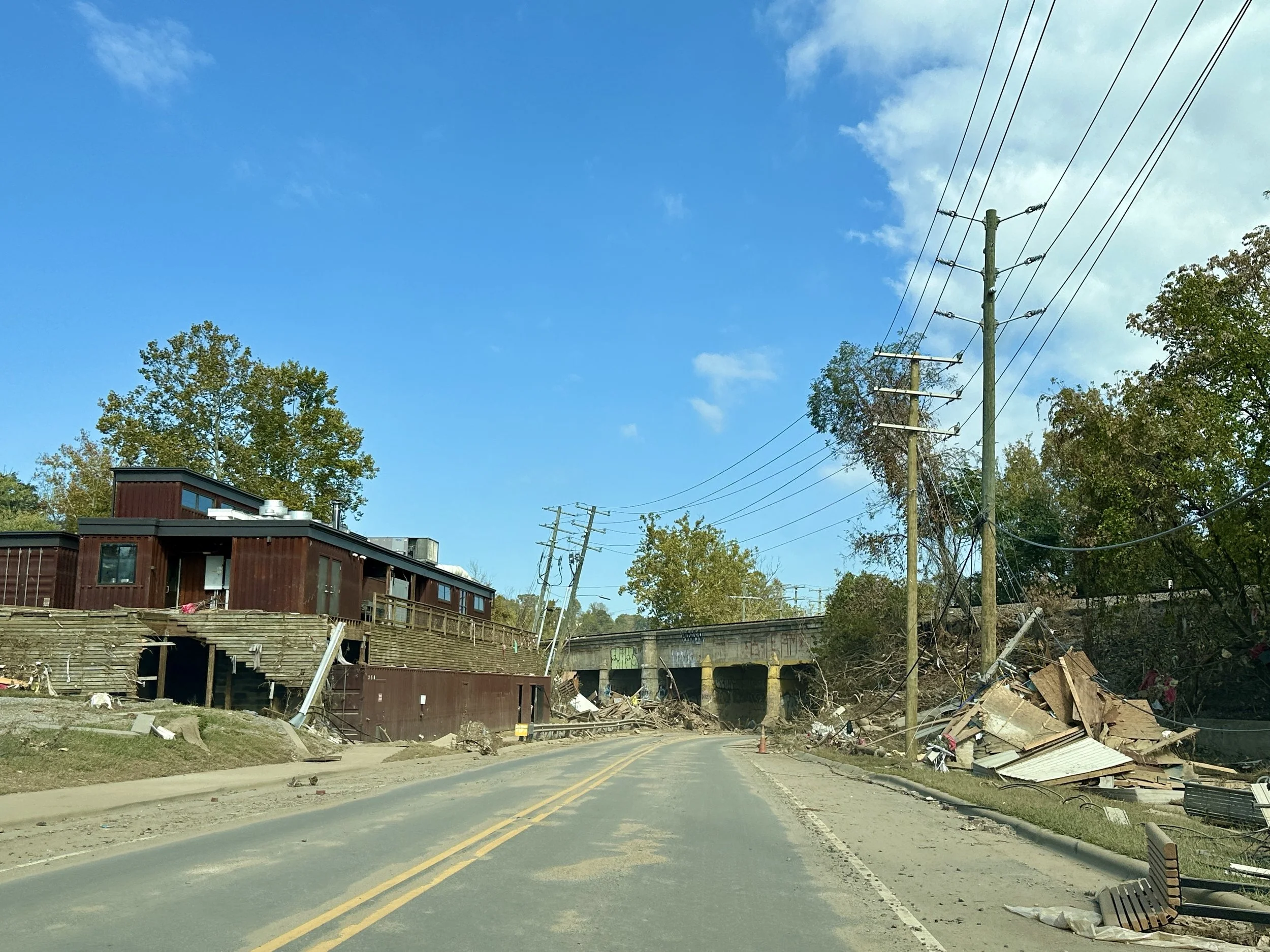 Biltmore Village after Helene. The Wendy's has now been torn down.