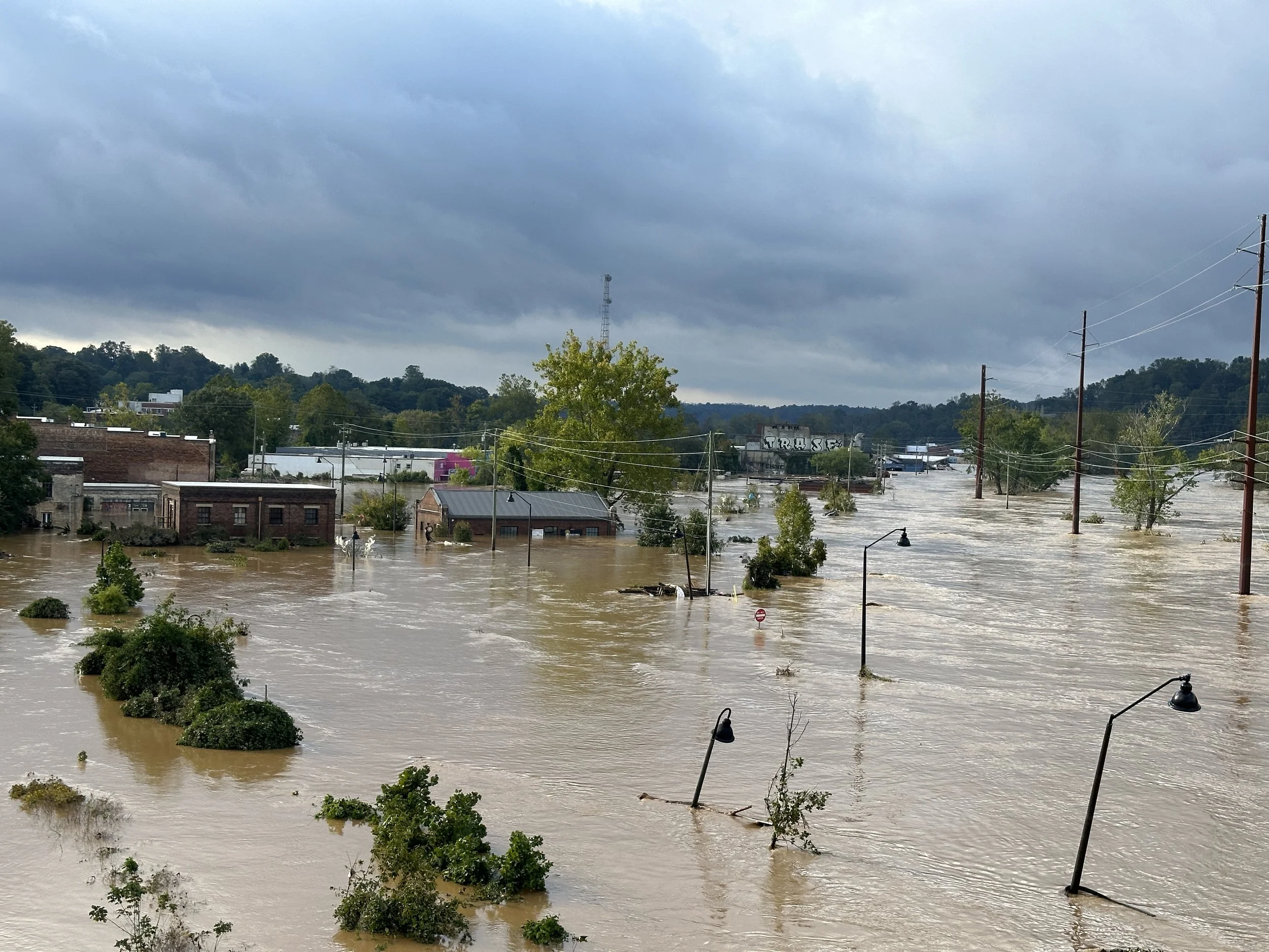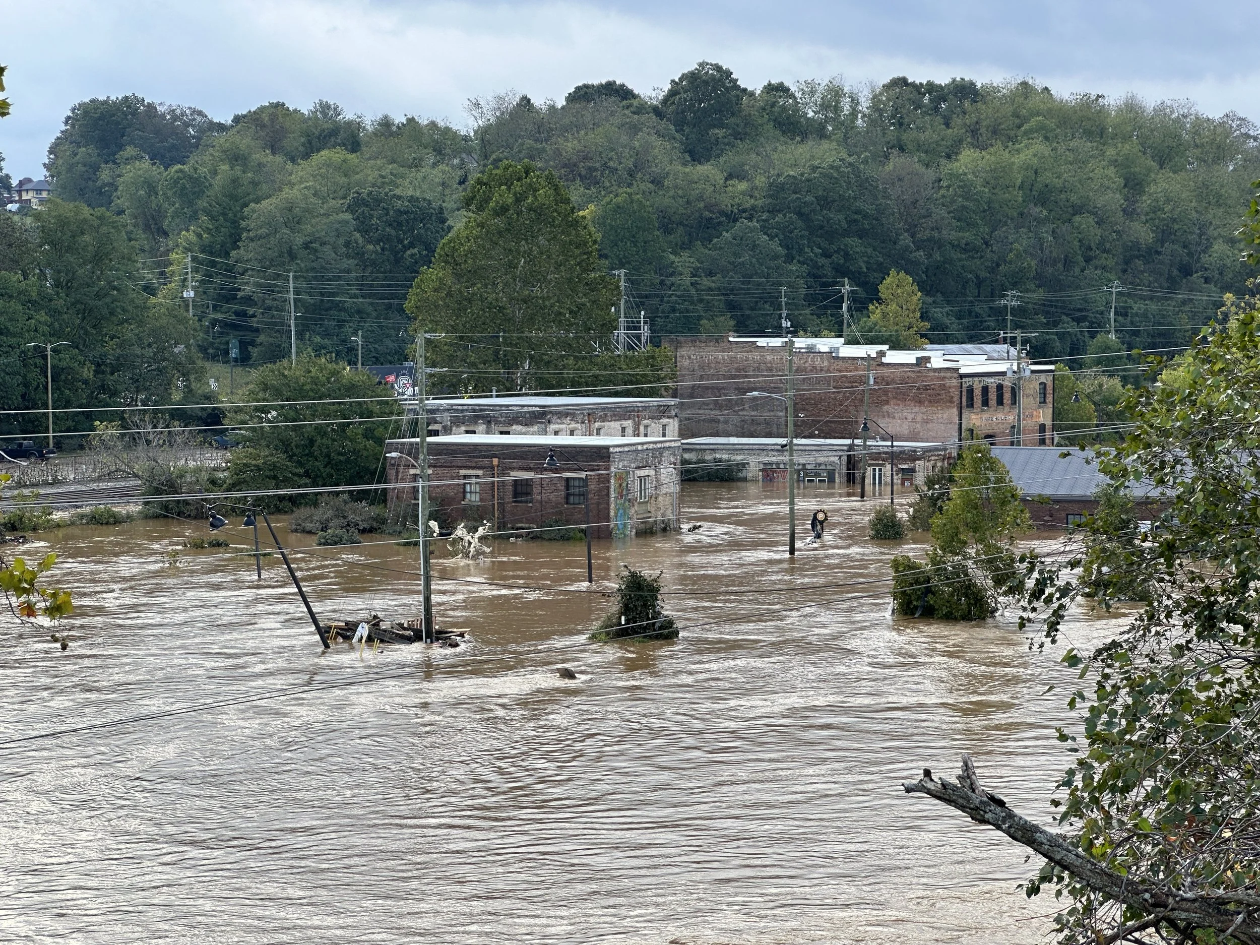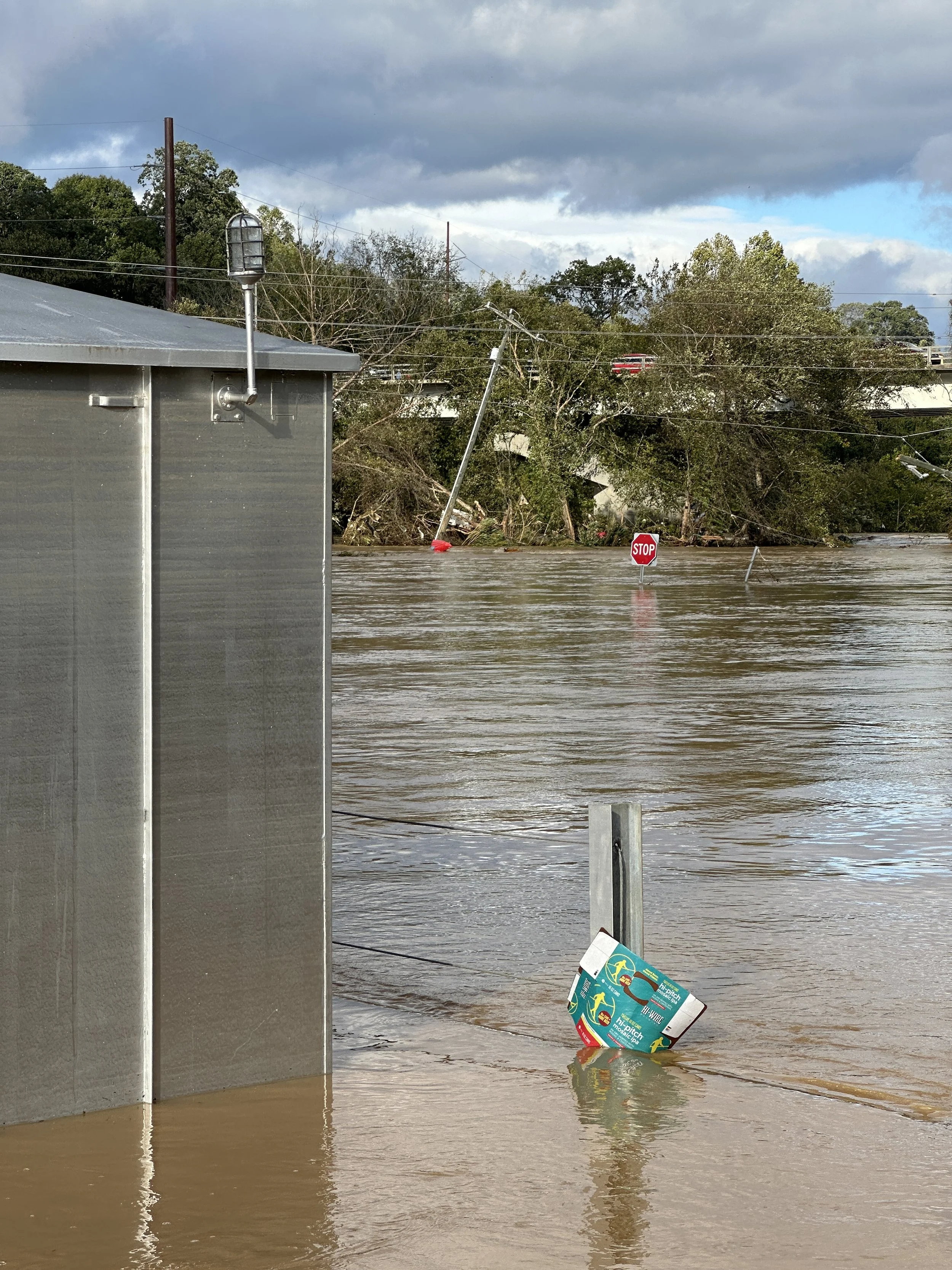 Second Gear Bike and Outdoor shop in the River Arts District before it was fully flooded by the river.