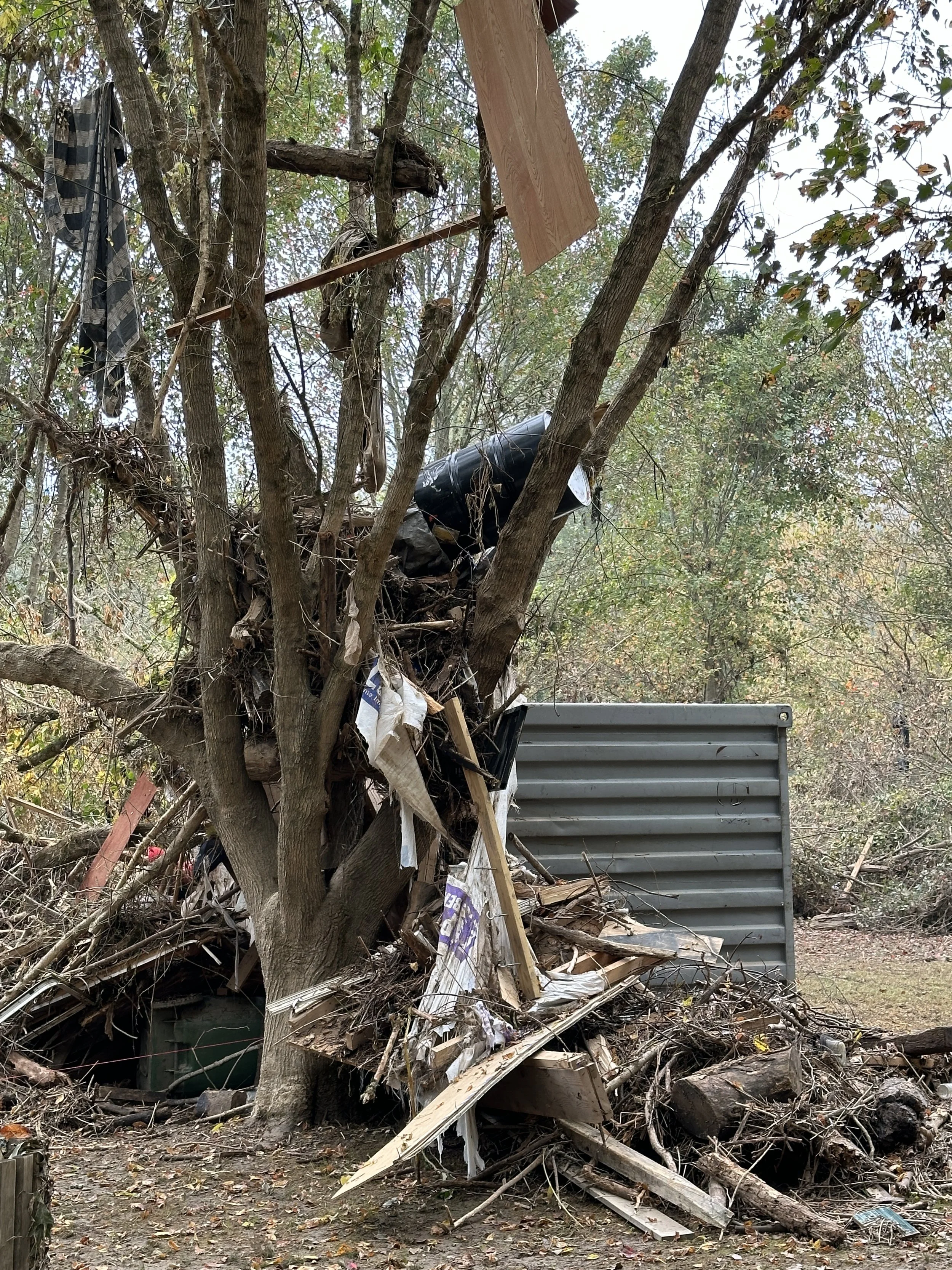 Carrier Park. Many objects, in addition to trees were carried by the raging waters.