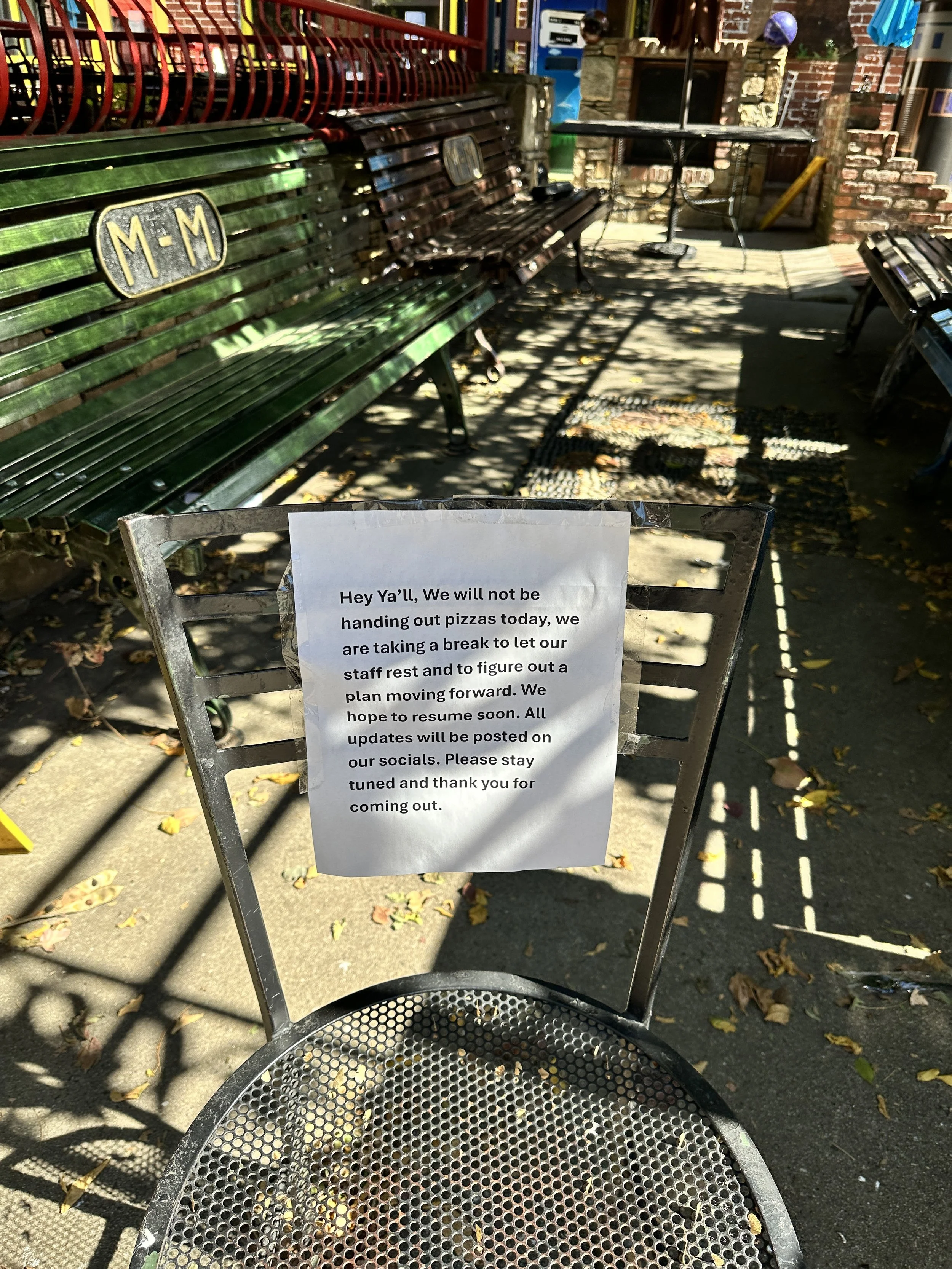 Free music and pizza at Mellow Mushroom downtown. Everyone was grateful for all of the generosity of businesses and volunteers.