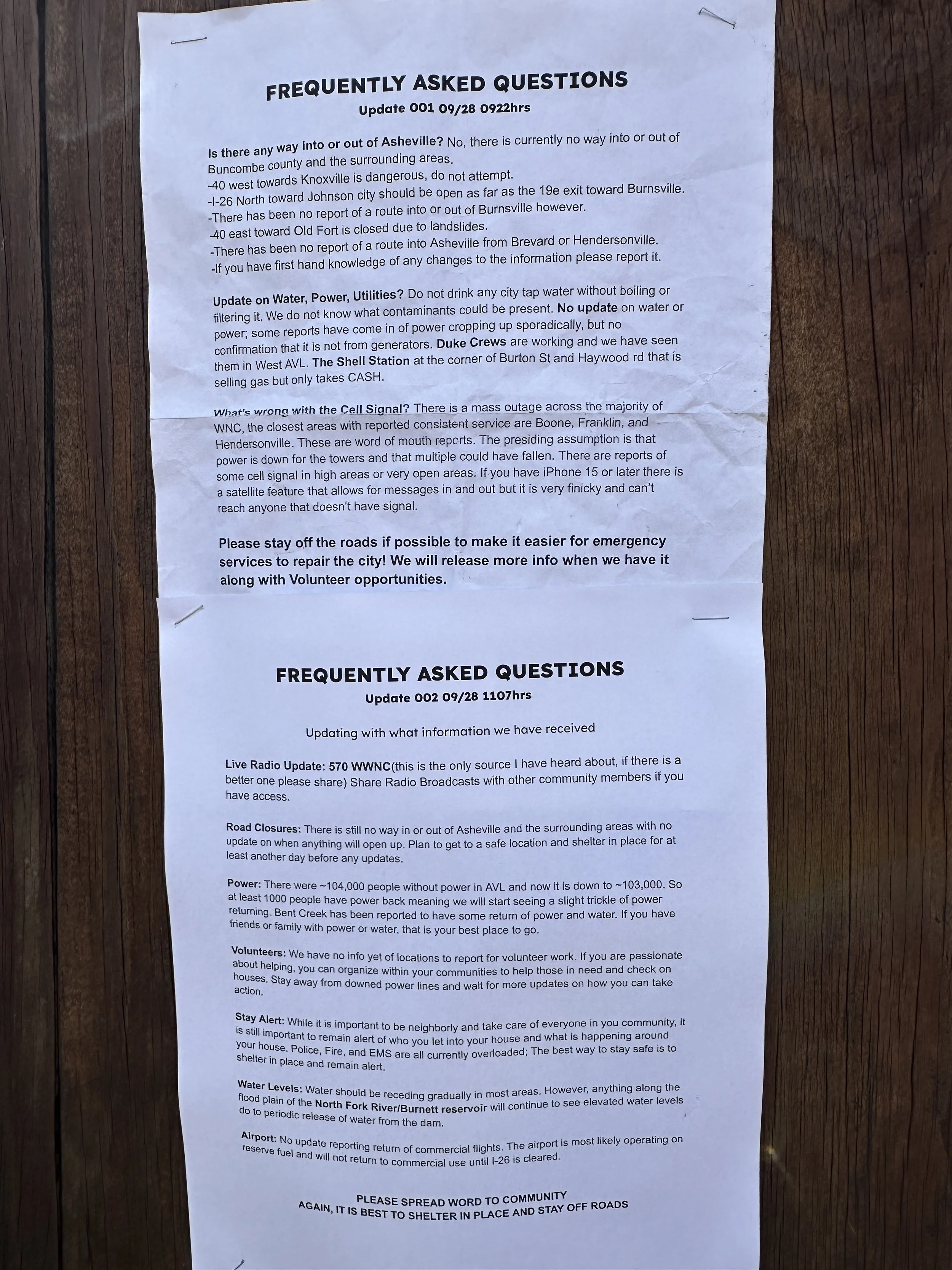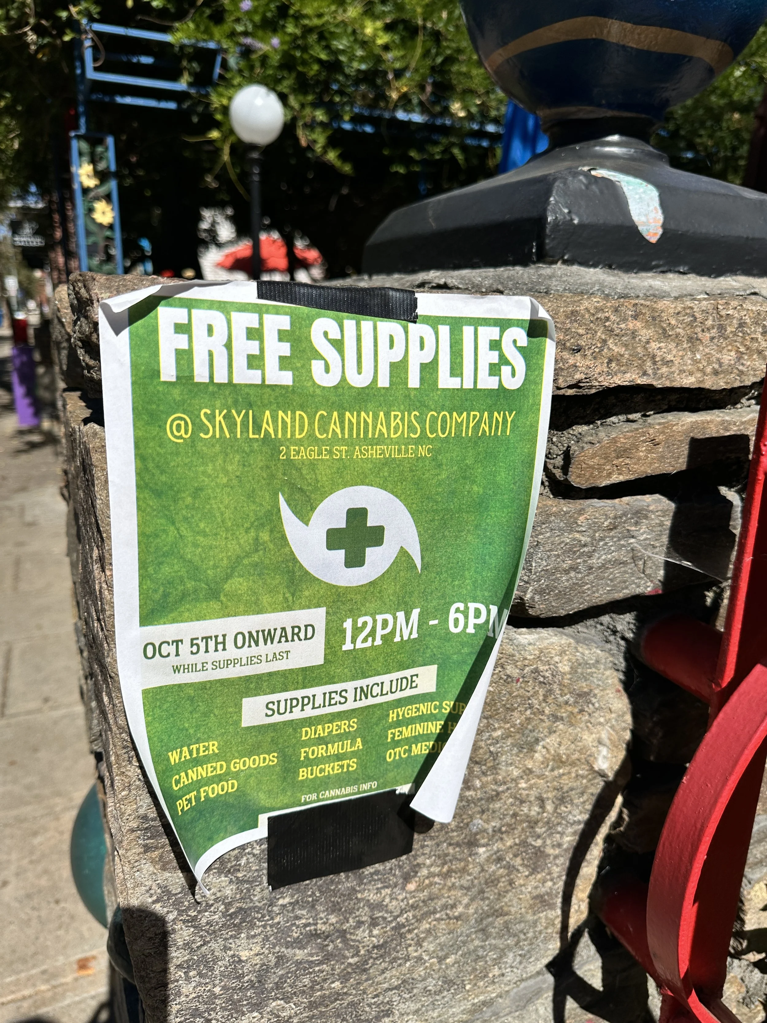 Free warm meals were often provided during the weeks following. Thank you Twisted Laurel downtown Asheville.