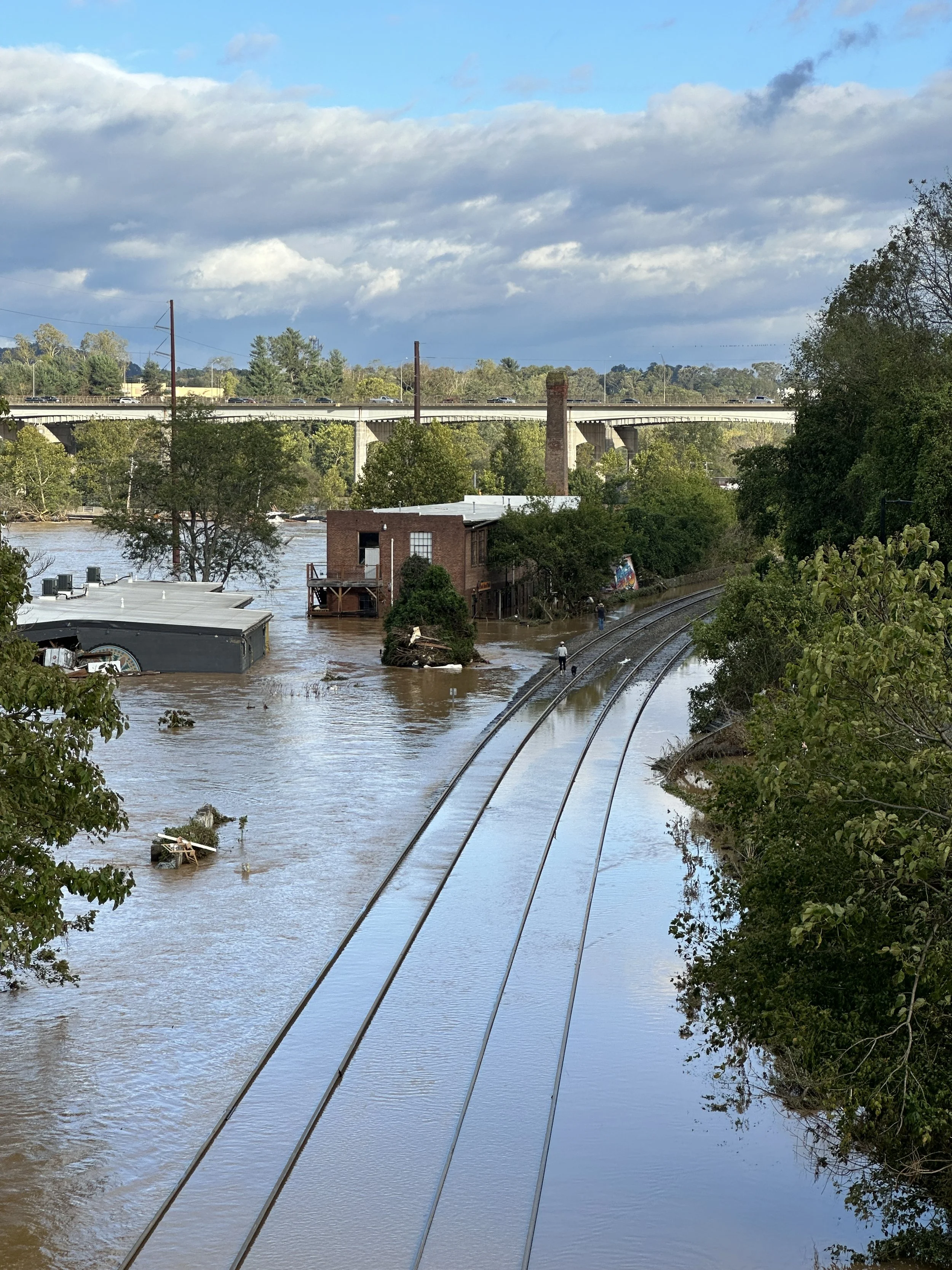 Curve at RAD after heavy rain before going underwater the night Helene came through.
