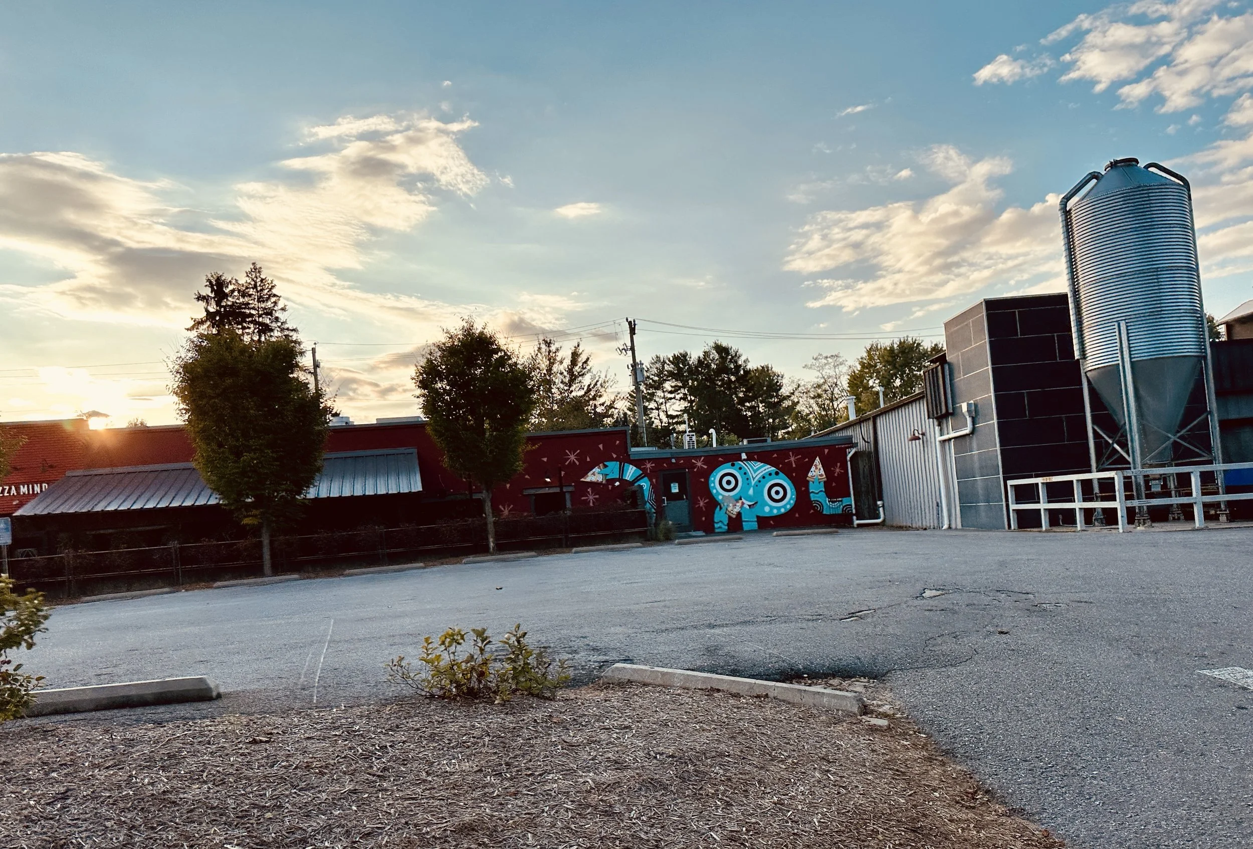 Clear sky over Archetype Brewing and Pizza Mind in West Asheville.